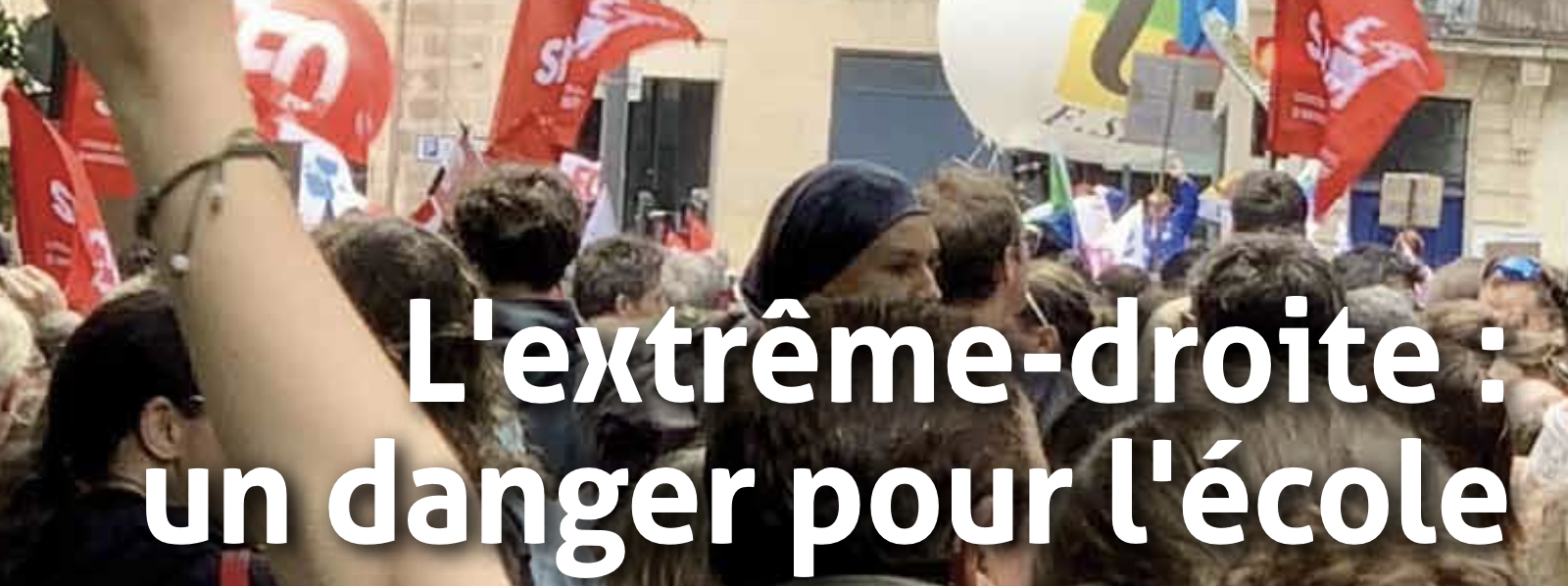 Qu’ajouter ? Qu’il ne fait aucun doute que l’extrême droite (ED) reste plus que jamais « aux portes du pouvoir » – pour ne pas dire qu’il a déjà hélas un pied dedans – , qu’en conséquence tout reste à faire et à entreprendre pour combattre pied à pied cette idéologie d’exclusion, nationaliste et raciste, qui prospère sur l’ignorance, les frustrations et le ressentiment. C’est en ce sens que le SNETAP-FSU a préparé ce dossier sur l’ED, outil de réflexion et d’action, à partir de notre champ de responsabilité – au sommaire : jeunesse, école, perméabilité du monde rural, combats syndicaux à mener…
