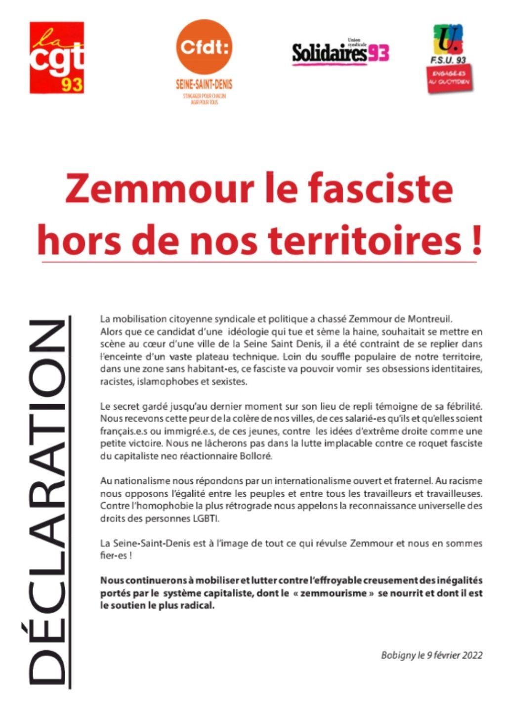 Intersyndicale-93-CGT-FSU-Solidaires-CFDT-contre-Zemmour-le-fasciste-2022-02-09