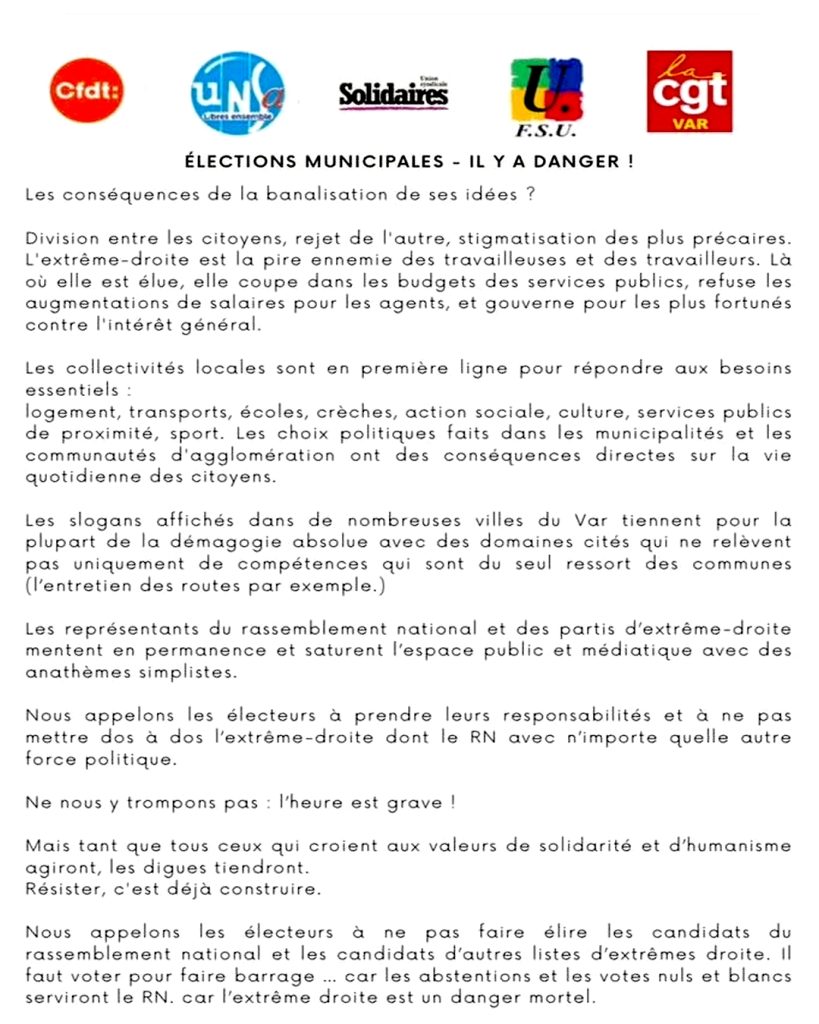 Depuis 2014, le RN et ses alliés dirigent déjà des municipalités. On les a donc déjà essayés et leurs bilans prouvent leur nocivité sociale et syndicale.