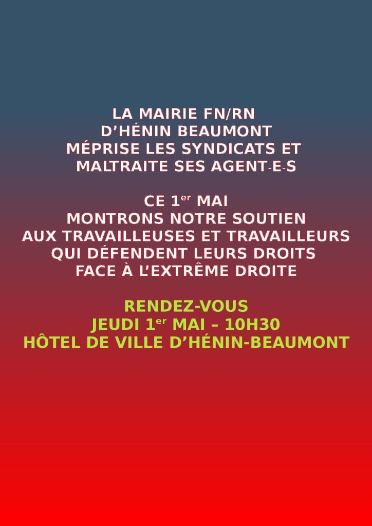 Sud CT Hénin Beaumont : Rendez-vous le 1er mai 2025 à Hénin-Beaumont, On ne lâchera rien !
