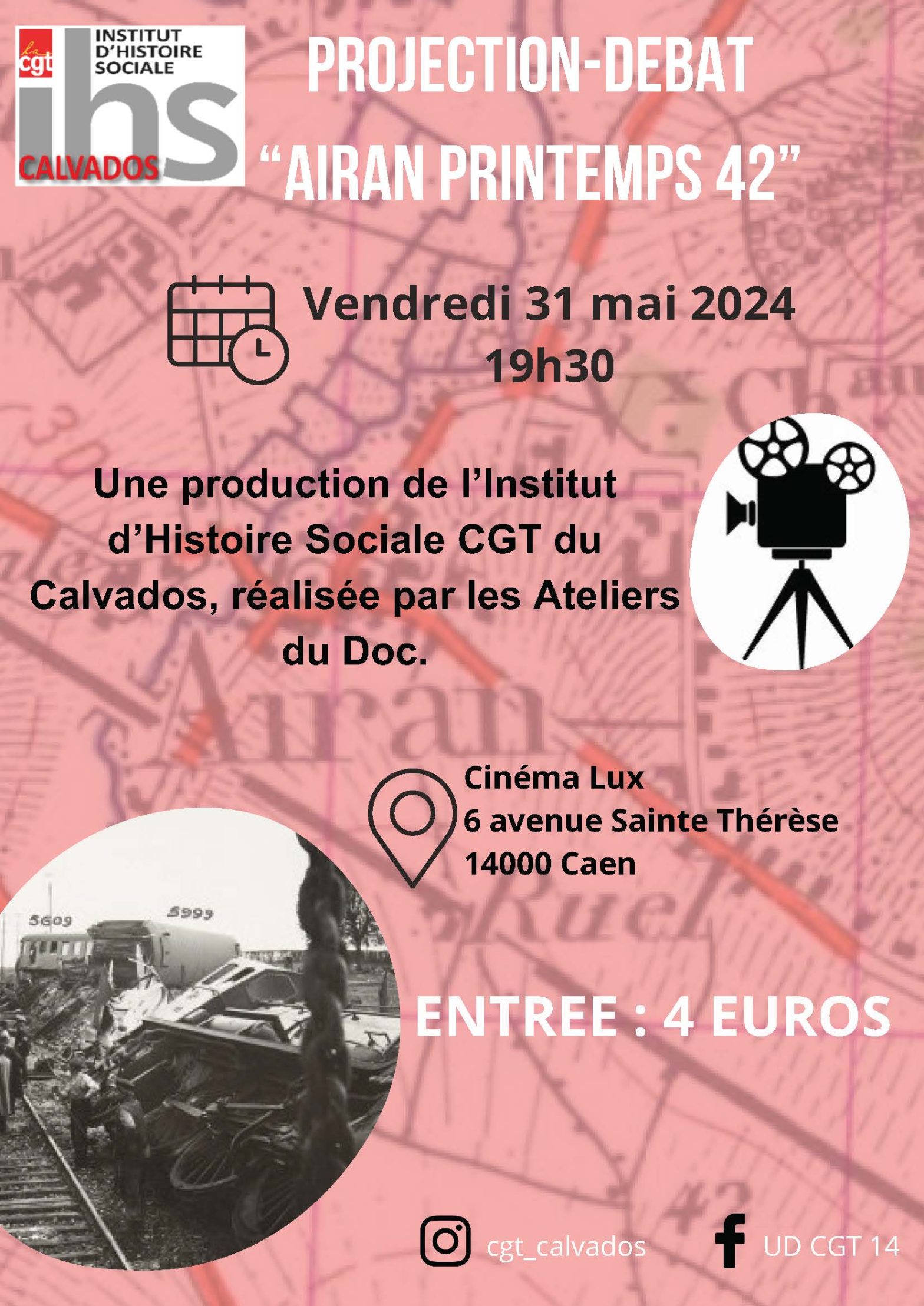 Projection débat IHS CGT 14 : « AIRAN PRINTEMPS 42 » Vendredi 31 mai 2024 à Caen